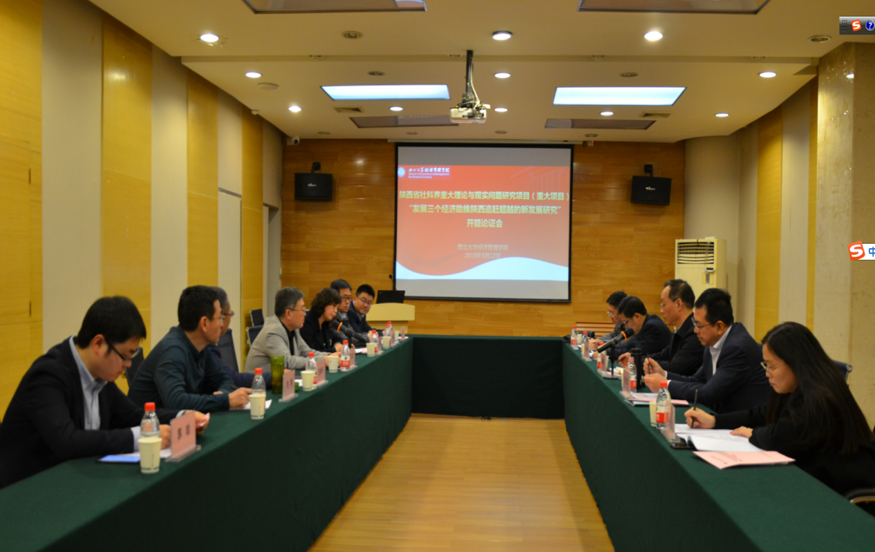 2019年3月12日下午,由西北大学校长郭立宏教授承担的陕西省社科界重大理论与现实问题研究项目《发展“三个经济”助推陕西追赶超越的新发展研究》开题论证会在我校太白校区召开。省社科联党组书记、常务副主席郭建树、省商务厅副厅长李生荣、省发改委规划处处长李雄斌、省社科院经济研究所所长裴成荣研究员、西安交通大学经济与金融学院冯宗宪教授、省社科院科普部部长李瑛应邀出席。课题组成员西北大学研究生院院长任保平教授、西北大学教务处副处长郭晗副教授、776net必赢官网副院长李辉副教授,以及西北大学社科处副处长李丰庆出席了会议。会议由776net必赢官网院长吴振磊教授主持。