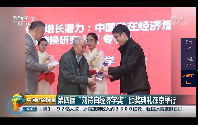 2018年12月22日,第四届“刘诗白经济学奖”颁奖典礼暨《刘诗白选集》发布会、经济学创新发展高层论坛在京举行。我院郭晗副教授的专著《结构变化与增长潜力:中国潜在经济增长率的测算及其结构转换路径研究》获得第四届刘诗白经济学奖并应邀出席颁奖典礼及论坛,我国著名经济学家刘诗白教授亲自为郭晗副教授颁奖。