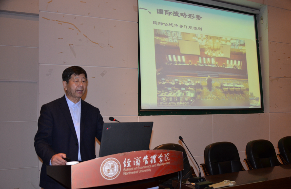 4月24日19:00,社科处和776net必赢官网主办的西北大学名家讲坛暨我院“学问与人生”学生素质教育系列讲座第十八讲在金海恒业报告厅举行。中国人民解放军军事科学院研究员、少将、战略学博士生导师姜春良应邀为学院师生作题为“国际战略形势变化与中国强军战略”的报告,报告由院党委副书记李一凡主持,社科处副处长李丰庆及学院师生共计260余人聆听报告。