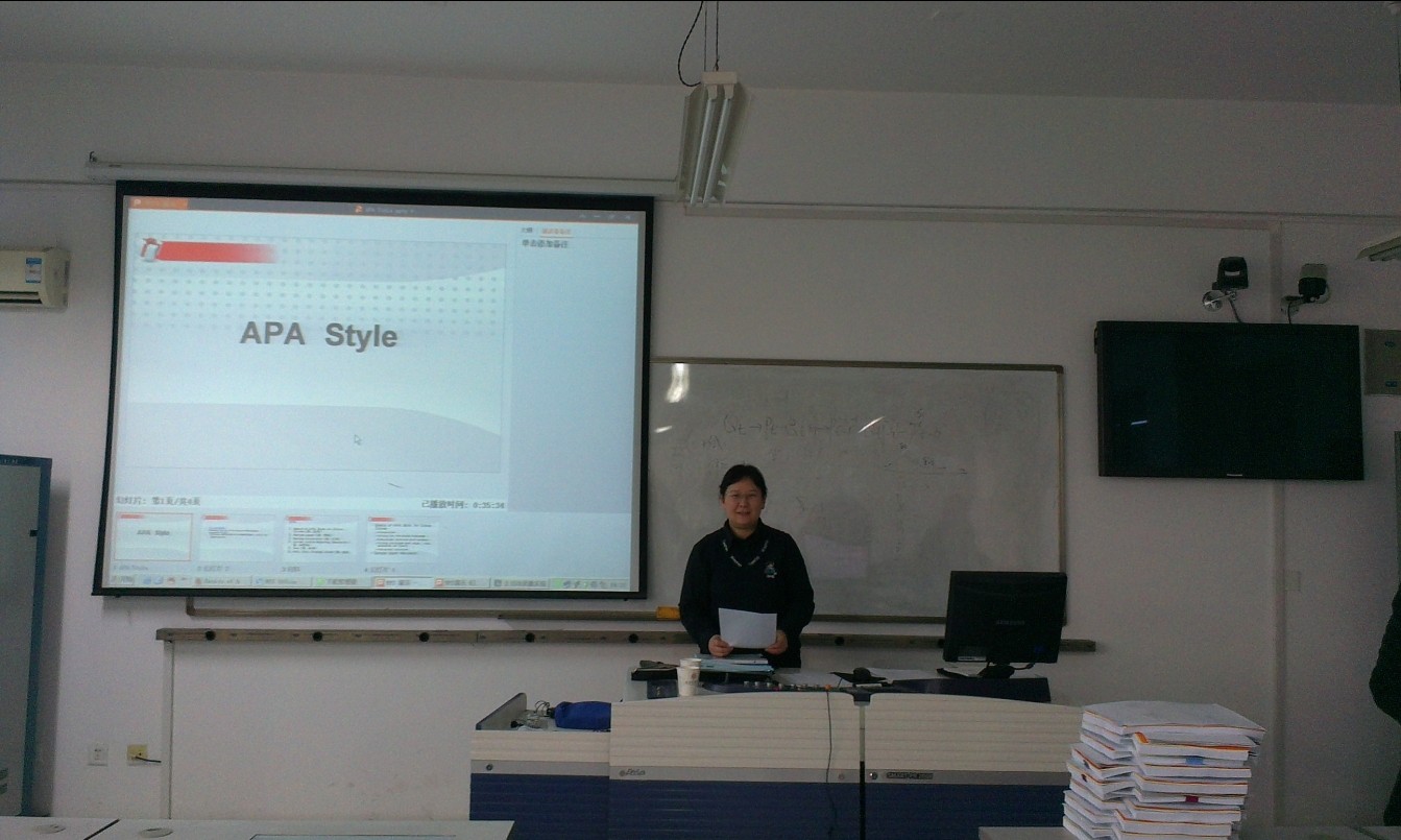 2014年3月5日776net必赢官网教师学术沙龙2014年第2期在长安校区776net必赢官网远程实验室(8212)举行。本期学术沙龙的主题是“国际社会科学学术写作规范——APA格式”,由776net必赢官网康蓉副教授主讲,何爱平教授主持,776net必赢官网青年教师与博士生参加了本次学术沙龙活动。