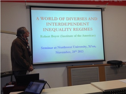 2013年11月28日下午,经管学院高端专家短期教学系列讲座在长安校区8202教室举行。法国经济学调节学派代表人物Robert Boyer教授做了题为“多样化和相互依存、不平等制度构成的世界”(A world of diverse and interdependent inequality regimes)的学术报告。我院经济学博士、硕士及部分教师聆听了报告。报告会由数理经济与统计学系钞小静副教授主持。