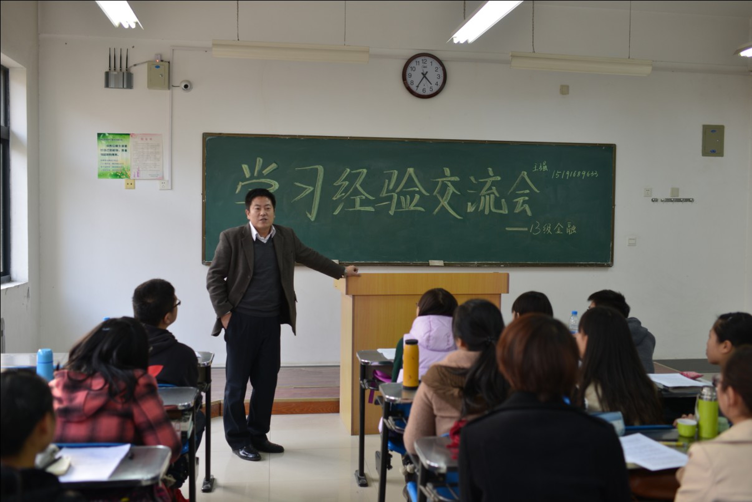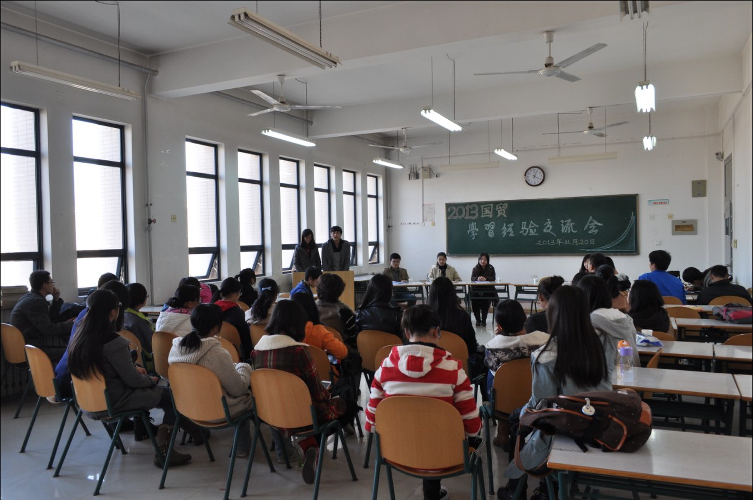 为了帮助2013级新生尽快适应大学生活,掌握正确学习方法,进一步调动学生学习的积极性,营造珍惜时间、刻苦钻研的氛围,夯实学院人才培养基础。学院分别于11月19、20日下午,11月21日晚上3个时间段内,组织全院8个系12个新生班级在南校区各教室开展了新老生学习经验交流会,13级全体新生共435人参加了交流会。另邀请了王颂吉、张弦等6名优秀博、硕士研究生,饶佳艺、刘磊等54名在上一学年获得国家奖学金、校优秀学生标兵、一等奖学金的优秀本科生作为嘉宾暨老生代表参加交流会,同大一同学分享学习经验。院党委副书记李一凡和各年级辅导员老师参加了本次活动。