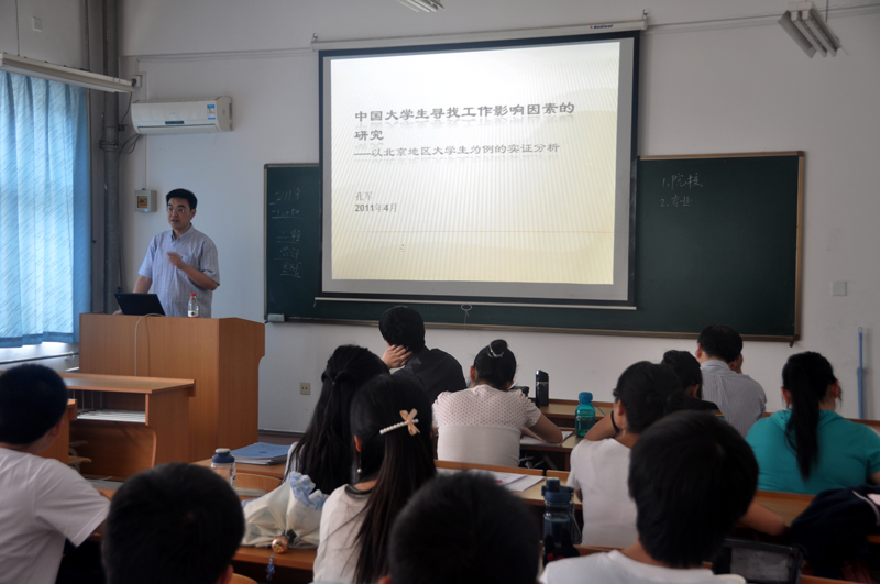 由学院经济学系主办的“现代经济学理论与方法创新论坛”第七卷第十三期4月27日下午2点在学院213室举行。此次论坛由财政与税收系孔军博士主讲,题目为“中国大学生寻找工作影响因素的研究------以北京地区大学生为例的实证分析”。