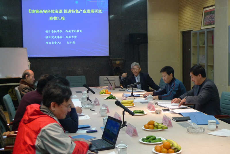2011年1月12日,西安市科技局组织专家对西北大学白永秀教授完成的“统筹西安科技资源 促进特色产业发展研究”课题进行了验收评审。验收评审会在776net必赢官网三层会议室举行,西安市科技局副局长高继平,西安市委政研室副主任李传顺,西安财经学院院长胡健教授,验收专家组成员西安理工大学776net必赢官网院长党兴华教授、陕西省政府参事曹钢教授、西北大学城市与环境学院教授刘科伟教授、西安邮电学院776net必赢官网院长张鸿教授等领导专家参加了项目验收会,胡健教授被推选为验收专家组组长。项目主持人776net必赢官网白永秀教授,课题组成员赵勇、邵金萍、吴振磊、吴丰华、王颂吉等也参加了会议,会议由西安市科技局计划财务处郭勇强副处长主持。