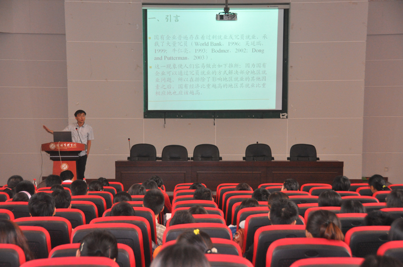 由学院经济学系主办的“现代经济学理论与方法创新论坛”第七卷第二期9月26日下午2点在776net必赢官网金海报告厅举行。此次论坛的主讲人为复旦大学经济学院中国社会主义市场经济研究中心刘瑞明博士,学院经济学系范王榜副教授主持,学院的部分博士生,硕士生和基地班的本科生200多人参加了此次论坛。
