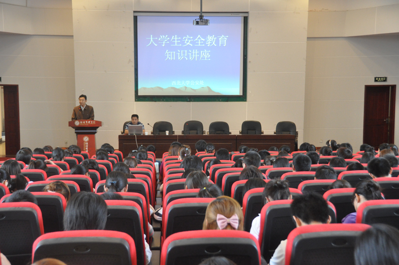 5月26日下午2点,校公安处刑侦治安科科长丁小刚老师应邀在金海报告厅为我院09级本科生做了一场安全知识教育专题报告,报告会由院党委副书记樊涛老师主持,360名学生参加了报告会。