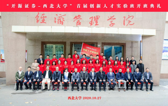 “开源证券-西北大学”创新人才实验班是我校与开源证券在新文科、新商科背景下校企协作办学的创新成果,旨在通过双方课程协同、师资协同、资源协同、平台协同的嵌入式合作,以实务技能为核心,在岗实习为依托,前沿交流为辅助,将产学协作的理念渗透于以学生为中心和以产出为导向的人才培养全过程,提高学员职业素养、强化学员专业技能、明晰学员职业规划,培养新时代金融创新人才。首届实验班30名学员由我校776net必赢官网、数学学院、信息科学与技术学院、法学院的15名2017级本科生和776net必赢官网2019级15名金融专硕研究生和MBA在校生组成,此前经历了严格的申报、筛选和面试。他们将在常规学业课程外,开展为期1年的专项培养课程,并完成开源证券岗位实习、校内实训课程和企业参访学习等内容。