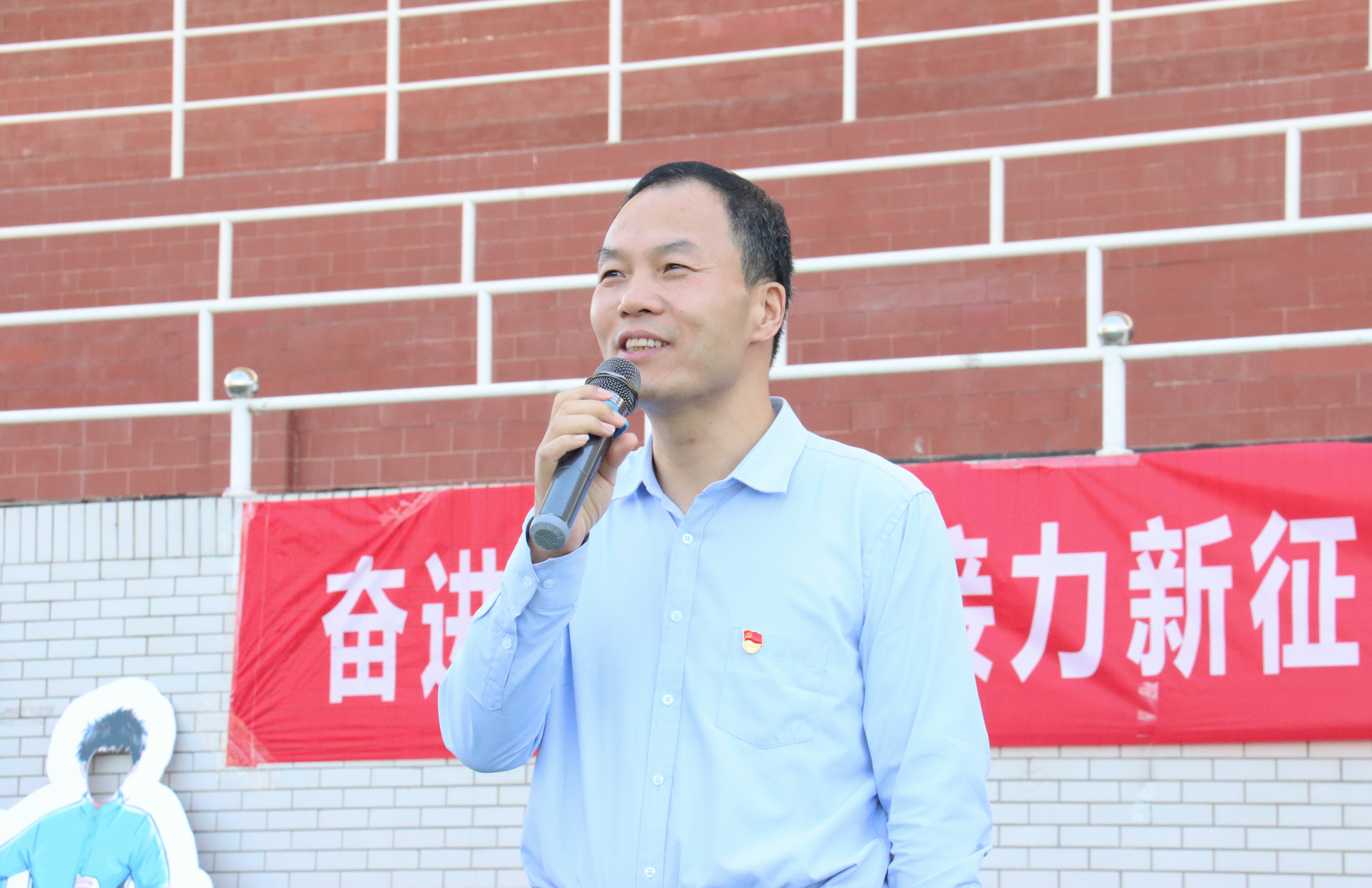 田明纲为本次接力跑鸣枪发令,开启了百名党员师生接力跑第一棒。
