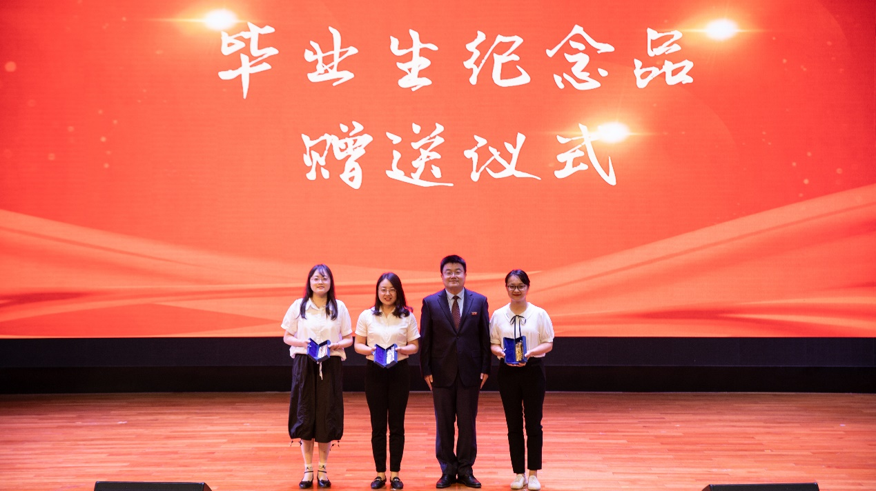 院党委书记杜勇为硕士毕业生代表赠送纪念礼物