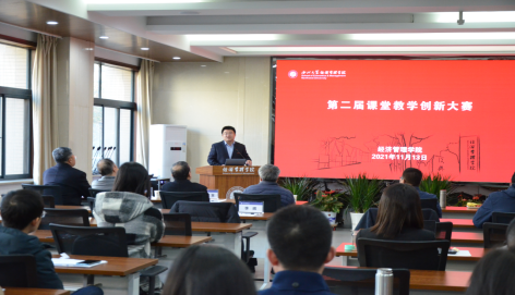 11月13日8:30—16:30,学院成功举办了第二届课堂教学创新大赛。西北大学教务处倪小勇副处长、西北大学城市与环境学院曹明明教授、公共管理学院梁忠民教授、数学学院王连堂教授、校高等教育研究中心主任姚聪莉教授、我院郝索教授、惠宁教授、刘慧侠教授、吴丰华教授、副校长、院长吴振磊、副院长李辉和40余名教师出席了活动。开幕式由副院长李辉主持。本次大赛分为经济学组和管理学组,学院教师共29人参赛,其中,经济学组17人参赛,管理学组12人参赛。经过一天紧张激烈的比赛,最终决出一等奖5名,二等奖8名,三等奖16名。所有参赛教师都进行了充分准备,在15分钟的时间内依次进行了10分钟现场教学和5分钟专家提问答辩。评审专家做了精彩点评和总结,鼓励青年教师不断提升教学技能。