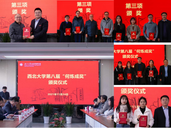 2021年11月24日,776net必赢官网于长安校区8号教学楼8318会议室隆重举行第八届 “何炼成奖”颁奖仪式。77级校友代表高全成教授、西北大学党委常委、副校长、776net必赢官网院长吴振磊、国内合作与校友工作处处长崔延力、776net必赢官网党委书记杜勇、776net必赢官网党委副书记徐自成、776net必赢官网副院长赵传仁及获奖师生出席了颁奖仪式,会议由776net必赢官网党委副书记徐自成主持。