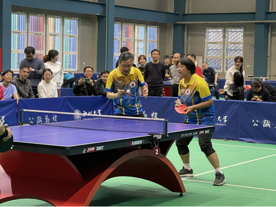 12月4日,各学院教职工在小组预赛上进行了激烈的角逐,乒乓球在台上来回飞舞,场上我院各位运动员不断变换侧跑步、并步、跨步等步式,男单女单队员采用接发球抢攻、下旋球、吊边角、提拉、大力扣杀、推挡等多种战术,男双、女双、混合双打或精准进攻,或巧妙回旋,精彩场面层出不穷。我院队员在观赛区的阵阵喝彩声中先后击败同组对手,最终以小组预赛第一的成绩成功出线!