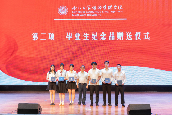 茹少峰教授为数理经济与统计学系本科毕业生赠送纪念礼物