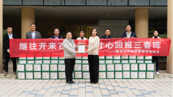 11月2日,2012级MBA校友呼延博、2015级MBA校友张洁向学校捐赠助农产品仪式在长安校区举行。国内合作处副处长燕来,776net必赢官网党委书记杜勇,院长马莉莉,副院长张华岭,MBA/EDP中心主任郭亚军,校友办公室主任吴丰华参加活动。