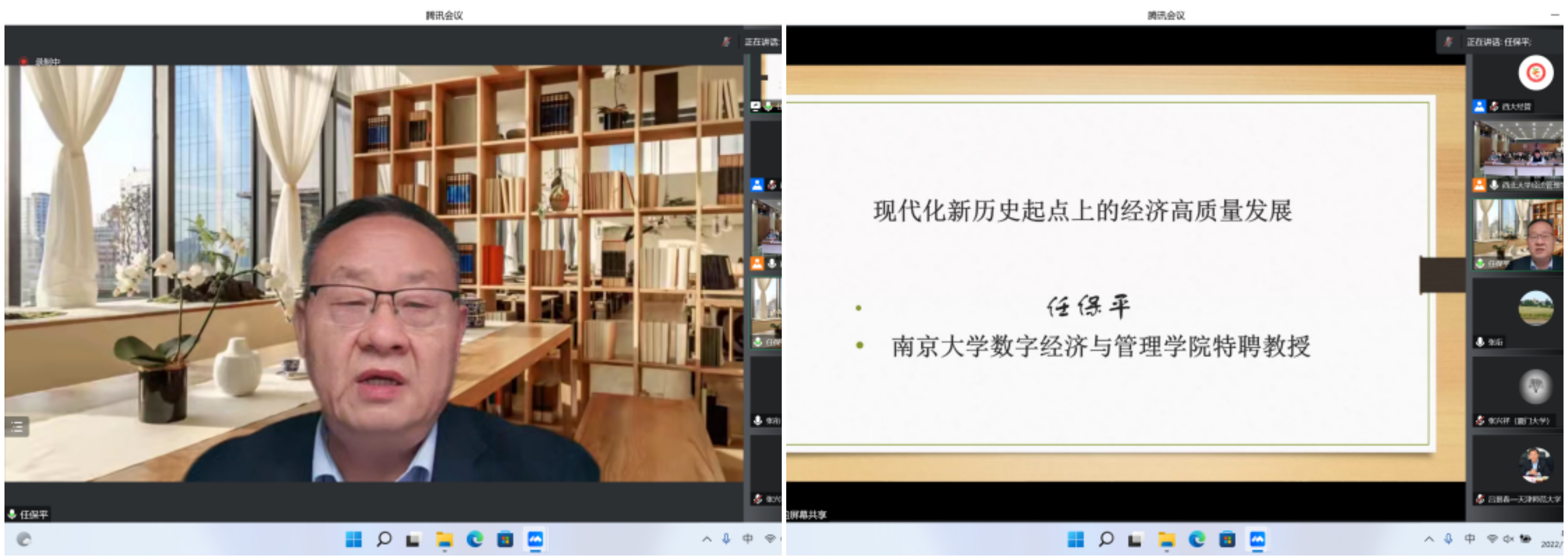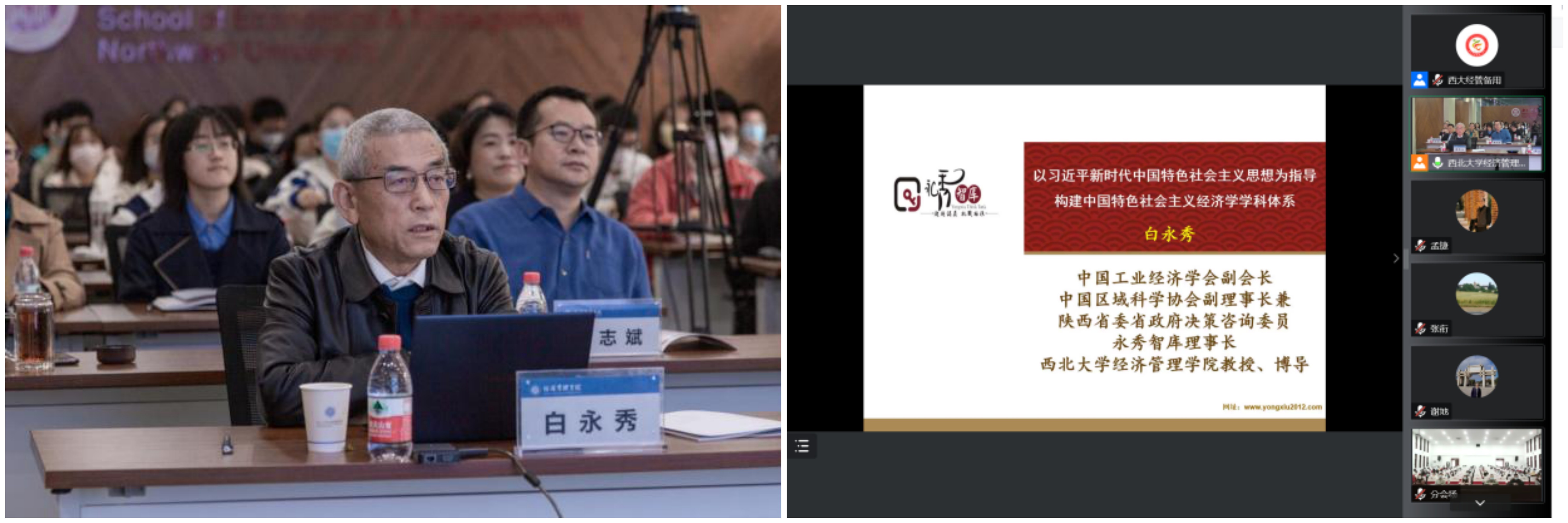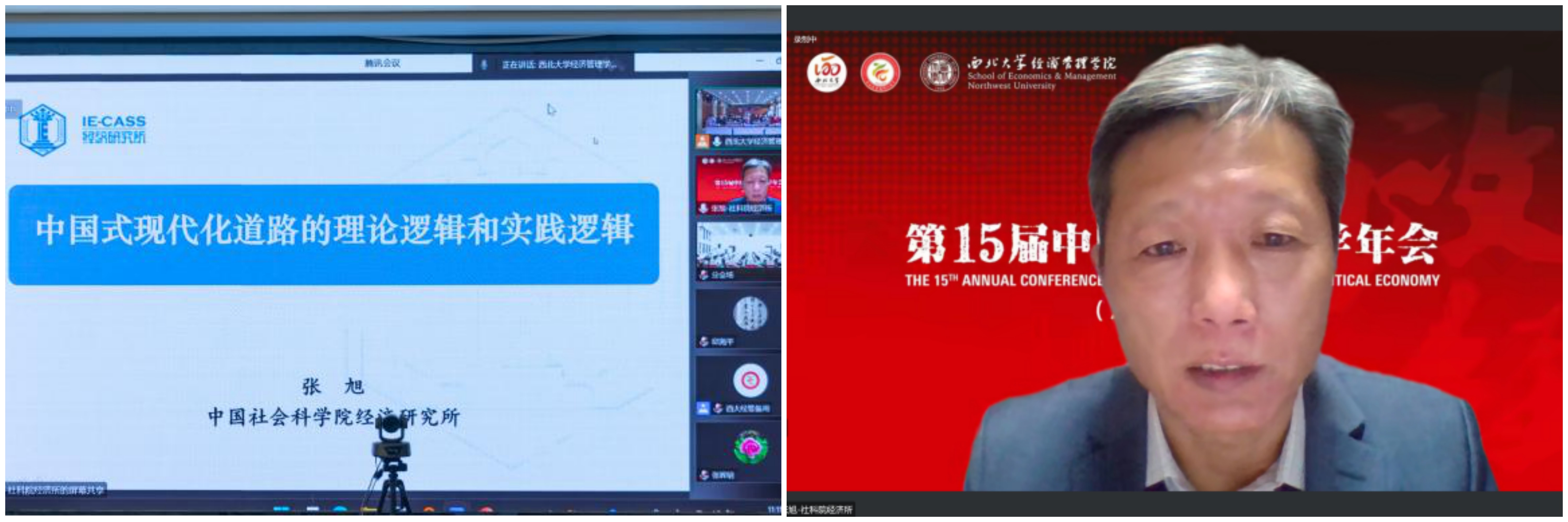 11月5日上午,年会开幕式上,西北大学校长郭立宏教授、本届年会主席西北大学白永秀教授分别致辞。开幕式后的主旨演讲阶段,中国特色社会主义经济建设协同创新中心主任、原南开大学副校长逄锦聚教授做了题为《全面贯彻习近平经济思想构建中国特色社会主义政治经济学自主理论体系》的报告,南京大学文科资深教授、原南京大学党委书记洪银兴教授做了题为《中国式现代化及其道路创新》的报告。西北大学副校长吴振磊教授主持开幕式和主旨演讲。