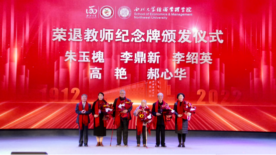 庆祝大会第二阶段由776net必赢官网党委书记杜勇主持。首先,776net必赢官网院长马莉莉教授以“回首半百、波澜起伏”“改革开放、传承创新”“开拓进取、累累硕果”“立德树人、桃李芬芳”“不忘初心、勇毅前行”为关键词,做了西北大学商科110周年发展的报告,并代表学院向长期以来关心和支持学院发展的广大院友和社会各界表示感谢。随后,西北大学副校长张远军向776net必赢官网两位老院长白永秀教授、任保平教授颁发杰出领导者奖,以表彰他们为学院发展所做的杰出贡献,并激励广大经管人牢记使命、传承创新、不断前行。西北大学校长郭立宏向李鼎新、朱玉槐、李绍英三位德高望重的老教师和郝心华、高艳两位荣退教师颁发荣退纪念杯,高艳老师作为荣退教师代表,简要回顾了自己在学院39载的职业生涯,感谢了学院长期的关心与鼓励,感谢了同仁们的互相支持,并表达了对学院发展的美好祝福。2001级旅游管理专业校友,安克创新科技股份有限公司高级副总裁张山峰先生代表爱心捐赠校友发言。他在大洋彼岸现场连线说到,母校在每个西大经管人心底都有极其特殊的位置,工作后为学校和学院的变化和发展而兴奋和自豪,在校庆院庆之际为学院做贡献是自己莫大的荣幸。