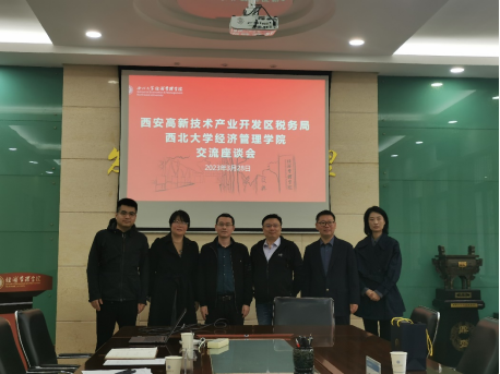 2023年3月28日上午,国家税务总局西安市高新技术产业开发区税务局副局长成苏涛、税务局人教科科长陈颖来到776net必赢官网就建立“税+校”实习实践交流合作等各项事宜进行洽谈。776net必赢官网副院长李辉、会计学系党支部书记韩少真以及教师代表郭宏、陈怡欣参加了此次座谈会。