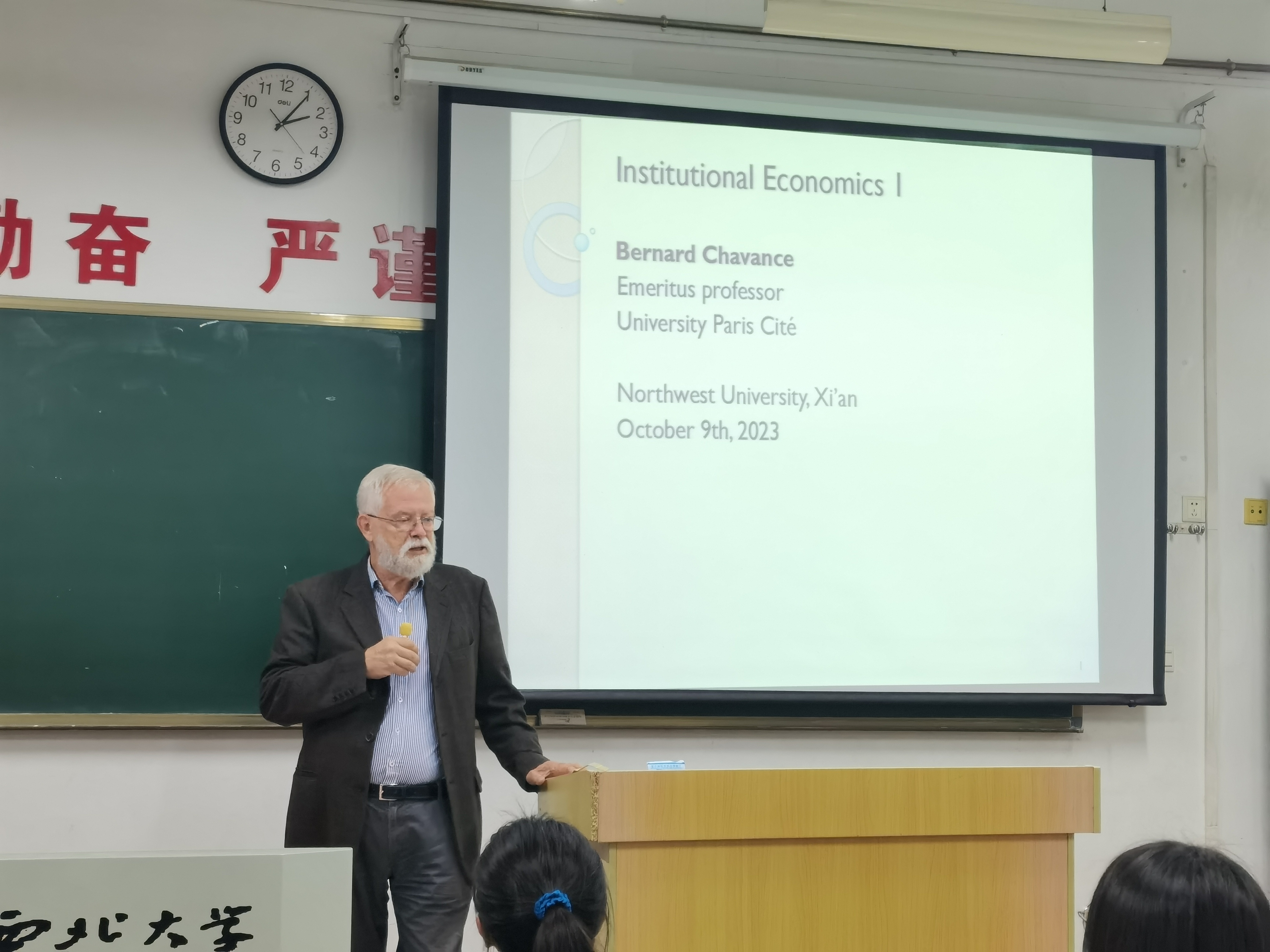 2023年10月9日-13日,776net必赢官网学术讲座暨“基地学术课堂”活动第一百三十五场成功举行。经济学系2021、2022、2023级经济学基地班、拔尖班以及学院部分教师参加了此次活动。本次活动邀请到巴黎城市大学名誉教授贝尔纳·沙旺斯(Bernard Chavance),并带来了为期四天的制度经济学短期课程。