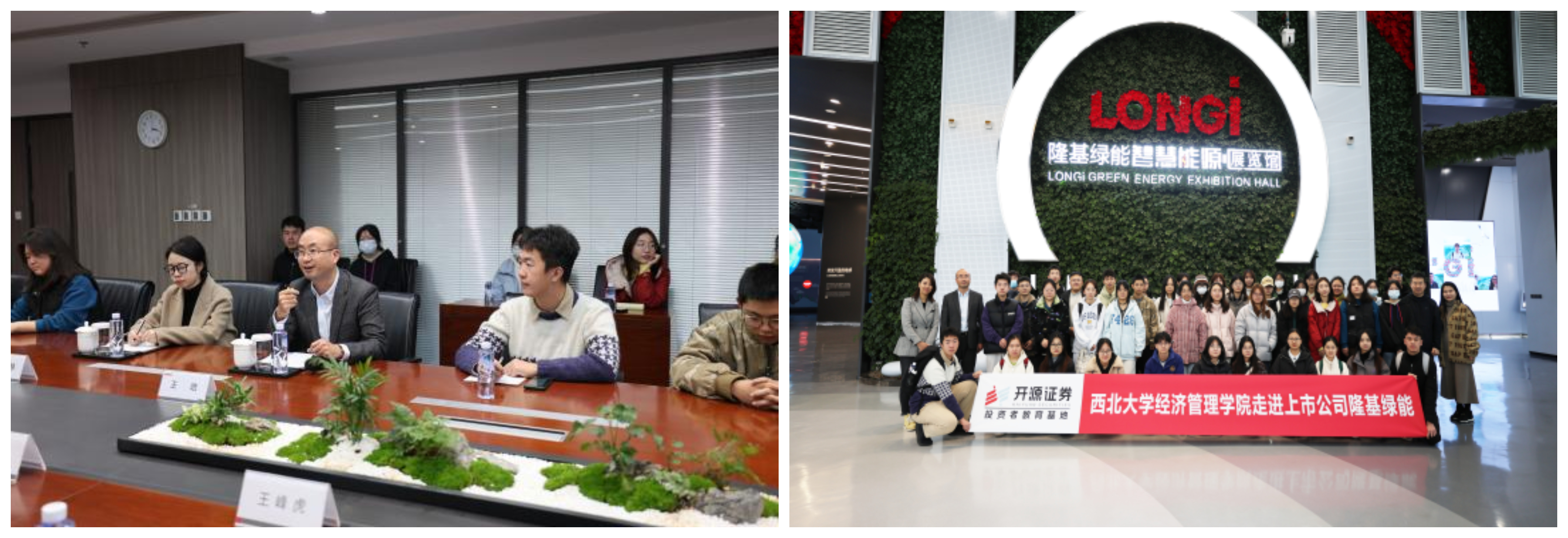 我院开源证券“证券投资实务”课程学员于11月15日赴隆基绿能进行访学。“证券投资实务”课程是开源证券根据与上交所、陕西证监局、西北大学国民教育进高校四方协议开设的本科生选修课程,师资由开源证券部门领导担任,课程专门设置了上市公司访学活动。
