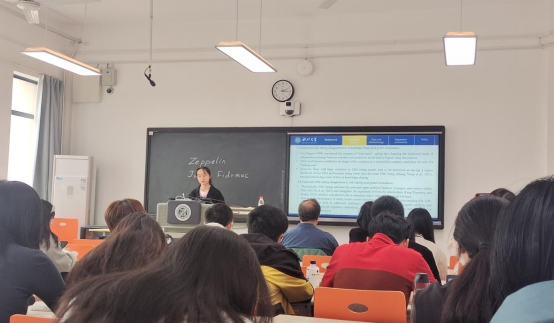报告伊始,康秀华同学从研究背景、理论分析、数据和方法、实证结论和政策五个方面对文章进行汇报。通过利用彭博、华证、中国研报、上岛融绿四家评级机构的评级结果构建ESG评级分歧指标,并从创新激励的角度探讨ESG评级分歧对企业绿色创新水平的影响和创新能力。接着,杨欣怡同学从研究背景、文献综述、边际贡献、研究假设、研究数据、实证结果等方面对文章进行汇报。通过以低碳城市试点政策为准自然实验,利用2005—2019年全国283个地级市的面板数据,采用双重差分模型和工具变量法,考察低碳城市试点政策对产业转型升级的影响及作用机制。在点评环节,Jarko Fidrmuc教授分别对两位同学的汇报进行了点评。在肯定两篇研究论文的创新性和前瞻性之后,从变量含义、实证方法、参考文献及写作细节等方面提出了详细的修改建议,这为两位同学给予了莫大支持。
