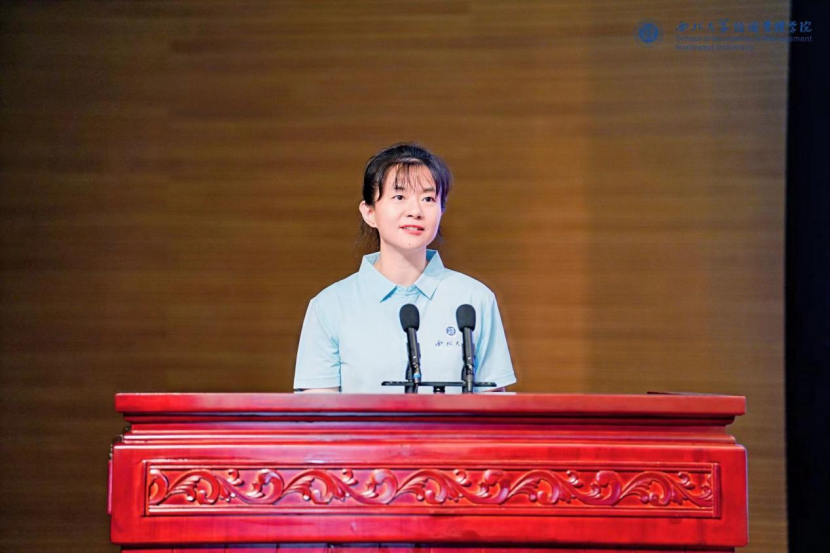 教师代表韦苇在发言中回顾了自己在学院求学求知、干事创业的经历,同时也对学院的发展提出期望,并鼓舞学生们不忘师恩、继续奋斗。