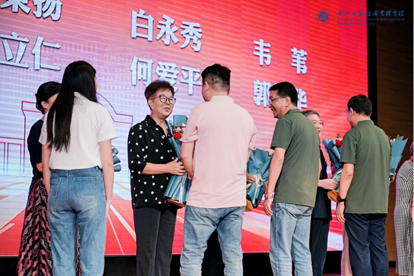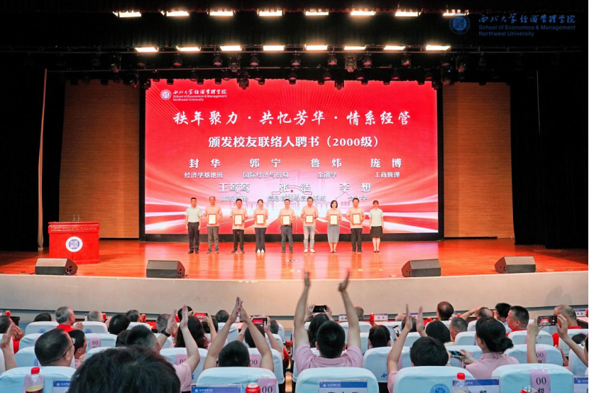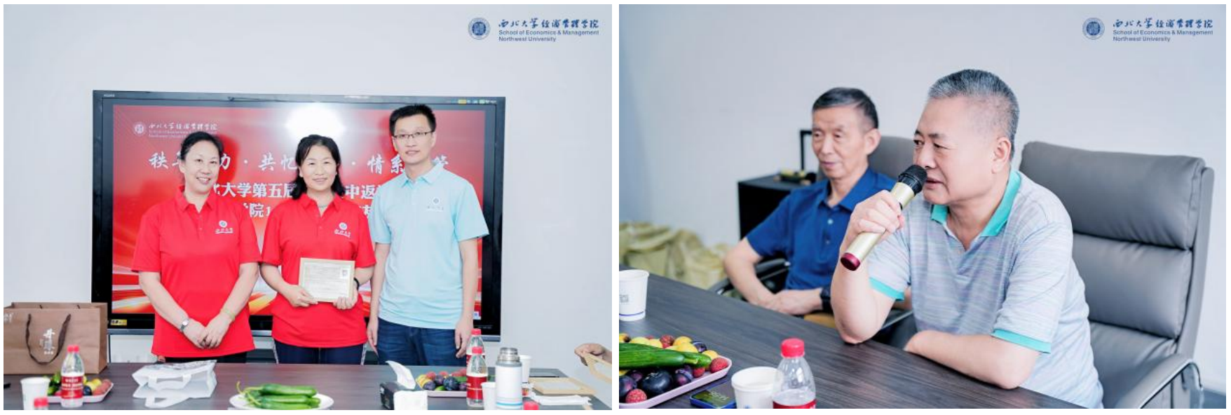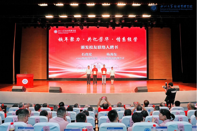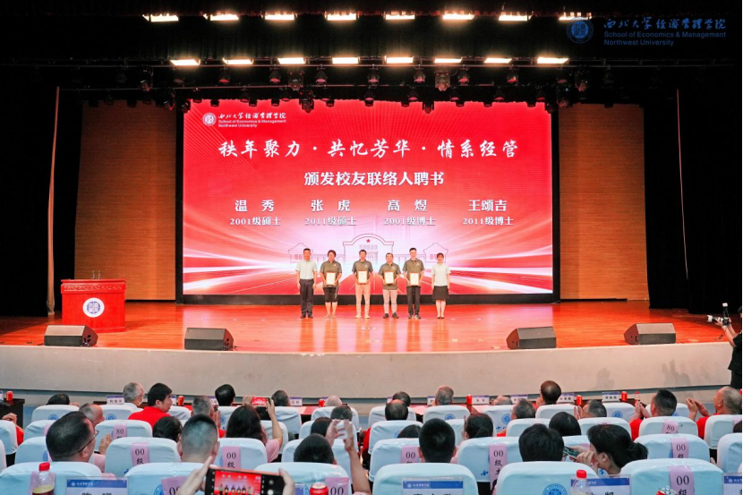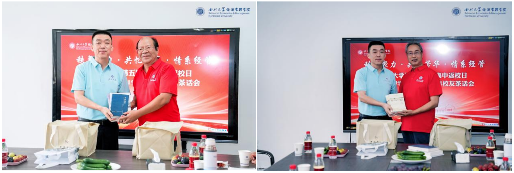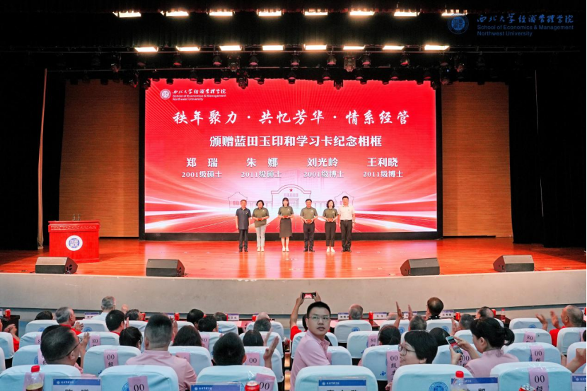 西北大学原校长郭立宏和西北大学副校长吴振磊为返校本、硕、博校友颁赠了蓝田玉印和学习卡纪念相框,表达了学校对每位校友的牵念与祝福。