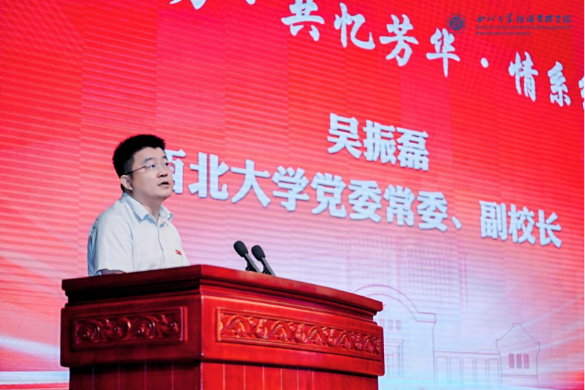 大会最后,2000级校友、校党委常委、副校长吴振磊在讲话中首先对校友们表示热烈欢迎和亲切的问候,也对校友们对母校、母院的支持表示衷心的感谢,更向培养校友们成长成才的老师们致以最崇高的敬意。他讲到,“一入西大门,一生西大人”,校友们把人生中最美好的青春留在了母校,无论走到哪里,走的多远,母校、母院始终是大家的心灵港湾和坚实后盾!母校和母院将与校友们更好地协同发展、共赢发展,努力打造校友与母校的终身命运共同体。