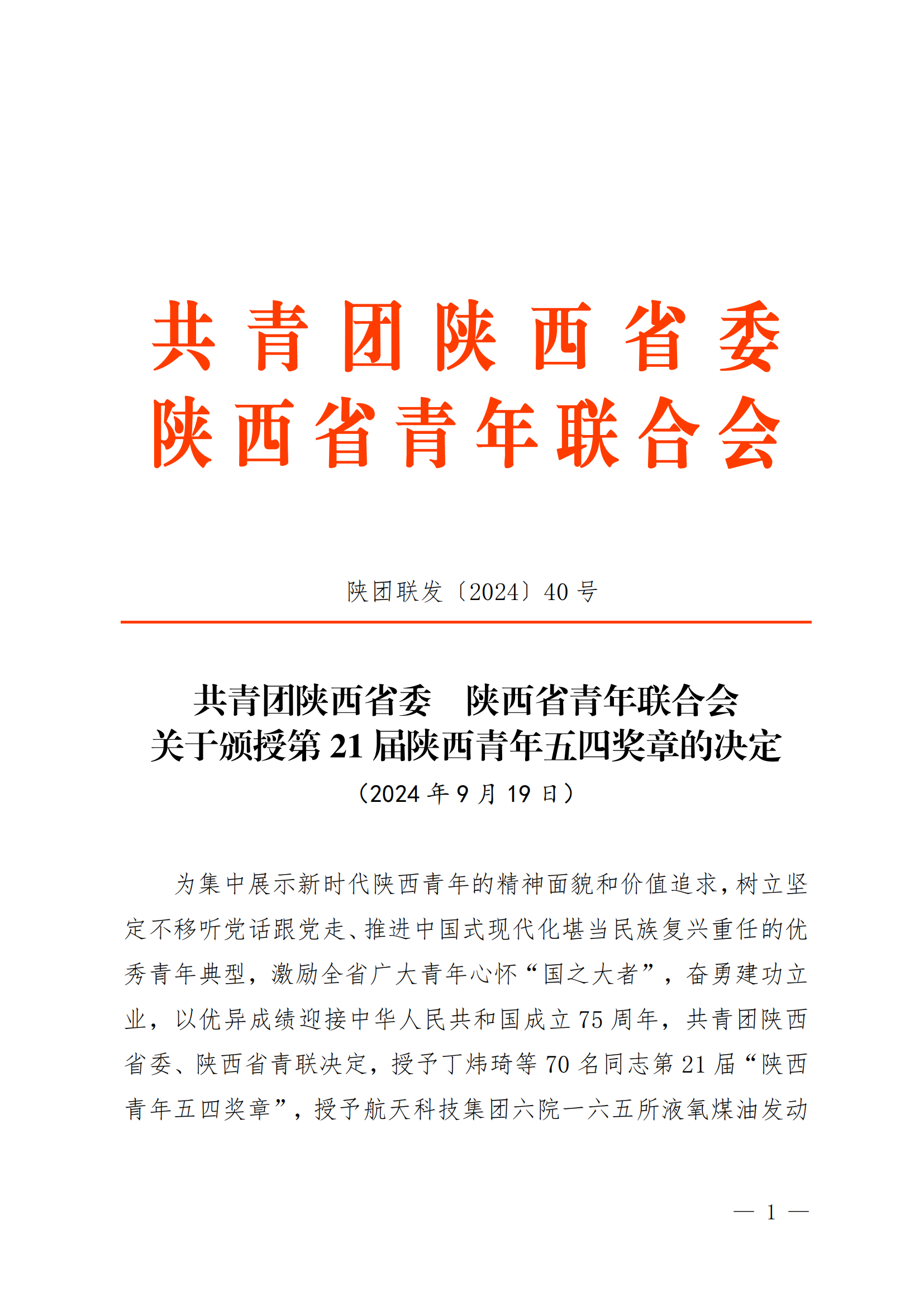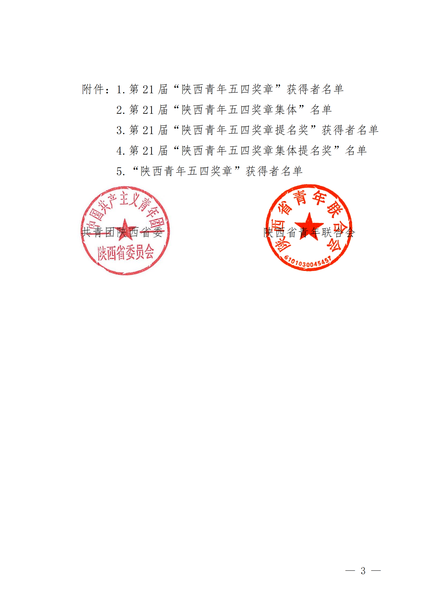 “陕西青年五四奖章”是共青团陕西省委、陕西省青联授予陕西优秀青年的最高荣誉。我院将以此为契机,继续发扬“五四”精神、团结协作、不断开拓进取、创新实践,我院青年也将继续以实际行动践行新时代青年的使命和责任,贡献自己的青春力量。