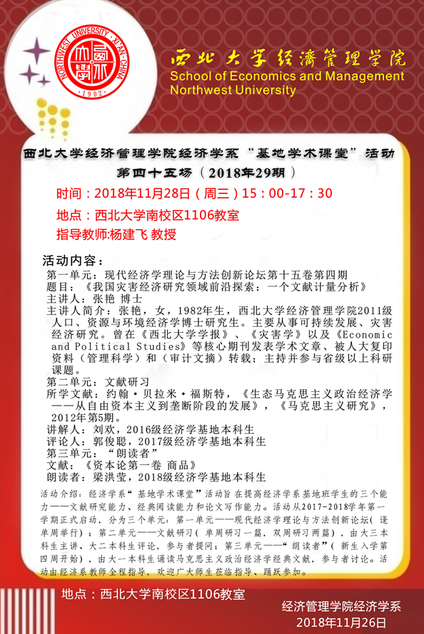 经济学系“基地学术课堂”活动第四十五场