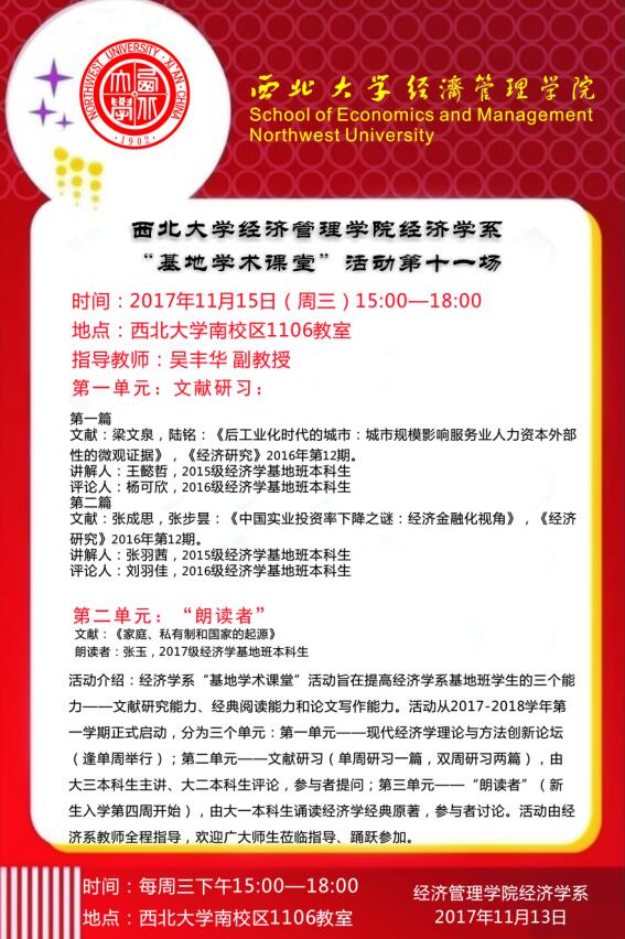 776net必赢官网经济学系“基地学术课堂”活动第十一场