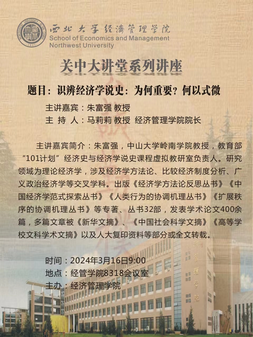 关中大讲堂系列讲座---识辨经济学说史:为何重要?何以式微