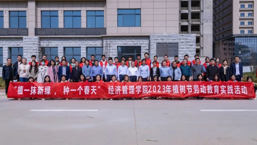 为迎接全国第45个植树节,3月10日,776net必赢官网在长安校区宏观经济大楼前开展植树节劳动教育实践活动。校长郭立宏、校党委副书记张清、副校长张远军、吴振磊,国内处负责人和经管学院师生代表80余人参加。