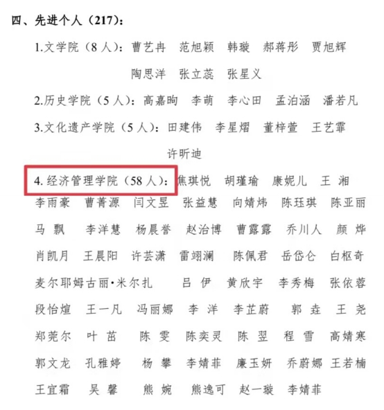 小我融入大我,青春献给祖国。本次获评是对所有实践队伍成员及老师的肯定和激励。希望全体经管同学向受到表彰的集体和个人学习,蓬勃向上、开拓进取,在以后的实践活动中能继续结合时代努力探索,不断丰富自我、增长才干、融合社会,秉承“公诚勤朴”校训和“自强不息、艰苦奋斗”精神,在服务中磨砺意志,在躬身实践中书写担当!