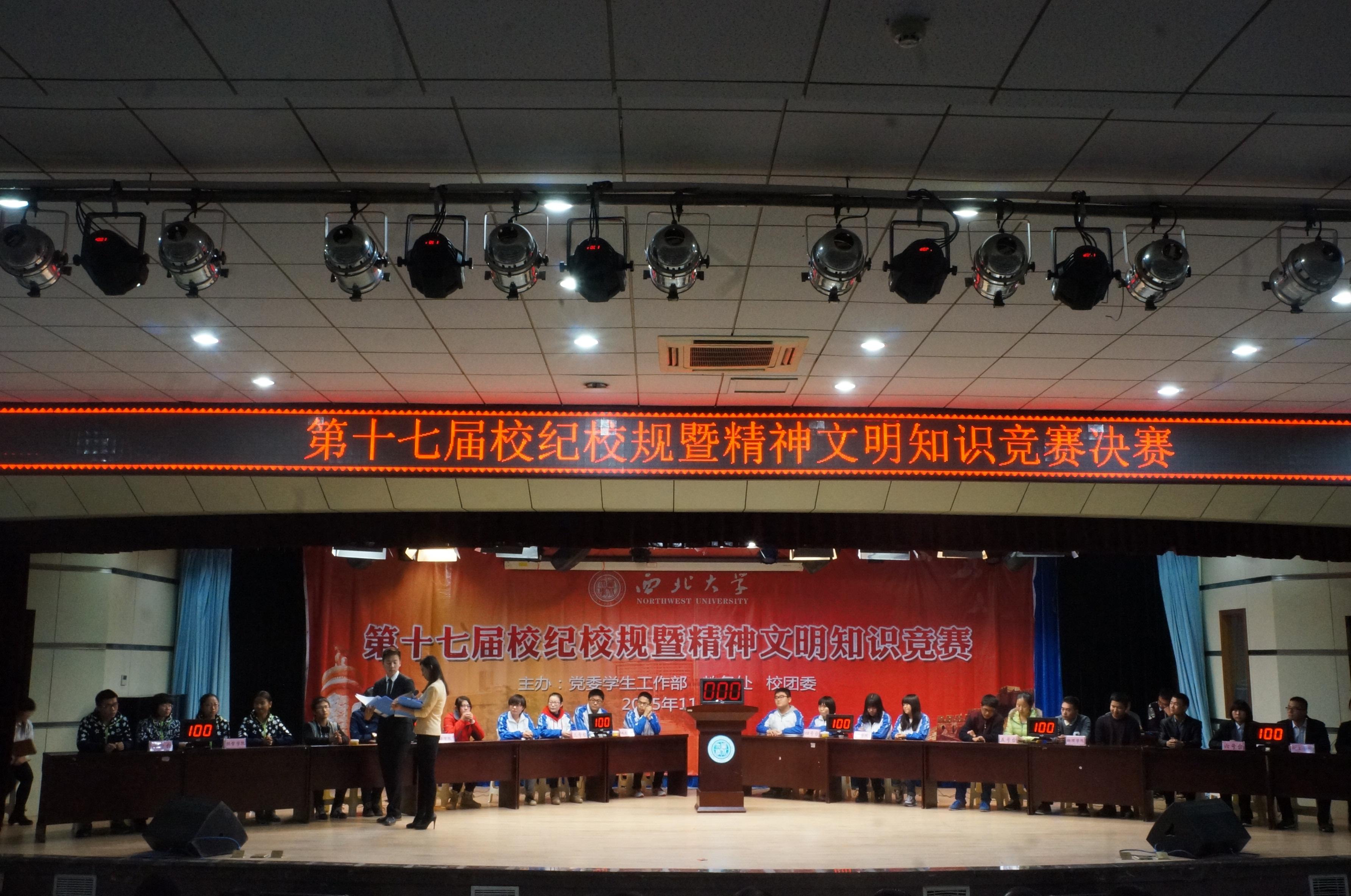 2015年11月11日晚,第十七届校纪校规暨精神文明知识竞赛于长安校区报告厅落下帷幕。决赛中,我院代表队以总成绩210分获得大赛二等奖,学院党委副书记李一凡以及全体学生工作干部观看了比赛。