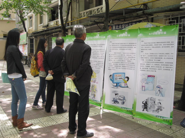 4月26日、27日我院研究生会和“经曰管云”研享会联合在太白校区新村家属区面向老年居民开展了以“防范金融风险,远离金融诈骗”为主题的志愿宣传活动。