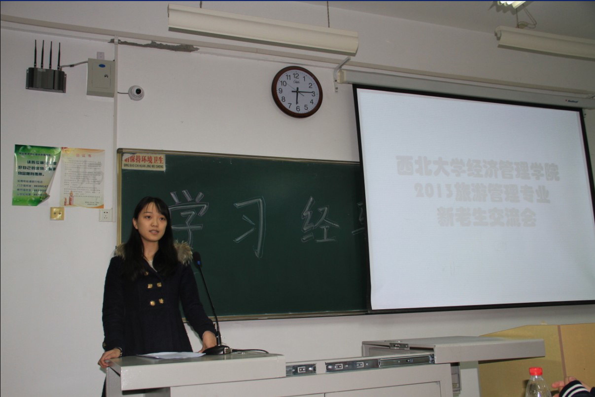 2013年11月21日晚六时,我院旅游管理专业在3309教室举办了新老生学习经验交流会。2013级旅游管理专业全体同学及四名高年级本科生代表参加了交流。