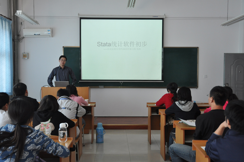 10月23日下午,我院马小勇副教授应邀在8213教室作了题为《stata统计软件初步应用——以对农村信贷约束的经验分析为例》的专题报告。报告会由院团委马金保老师主持,2009级硕士研究生参加了报告会。