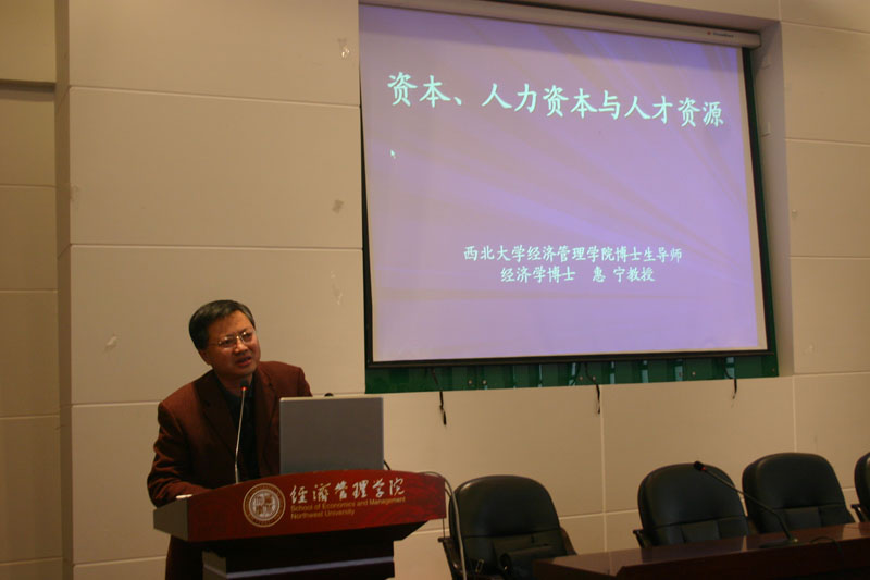 12月3日晚,惠宁教授应邀为我院学生做了题为“资本、人力资本、人才资源”的专题报告会。报告会由院党总支副书记樊涛老师主持。300多名学生参加了报告会。