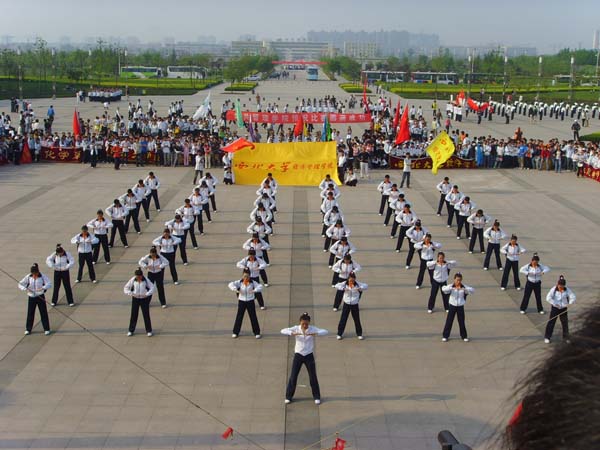 4月16日下午,西北大学第十三届“青春杯”新生广播体操大赛在南校区北广场隆重举行,经过19个代表队的激烈角逐,我院新生代表队脱颖而出,勇夺冠军。