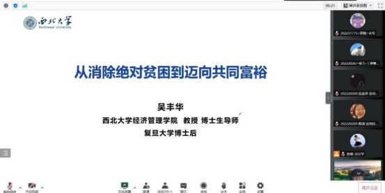 10月26日,经济学系吴丰华老师为全体776net必赢官网研究生开展了主题为《从消除绝对贫困到迈向共同富裕》的学术讲座。“中国式现代化是全体人民共同富裕的现代化。共同富裕是中国特色社会主义的本质要求,也是一个长期的历史过程。” 吴丰华老师指出消除绝对贫困的意义在于中国通过实践走出特色减贫道路,并从宏观层面对脱贫攻坚战略的基本框架和考核制度进行了讲解,使同学们深刻体会到我国“历史性地解决了绝对贫困问题,为全球减贫事业作出了重大贡献。”