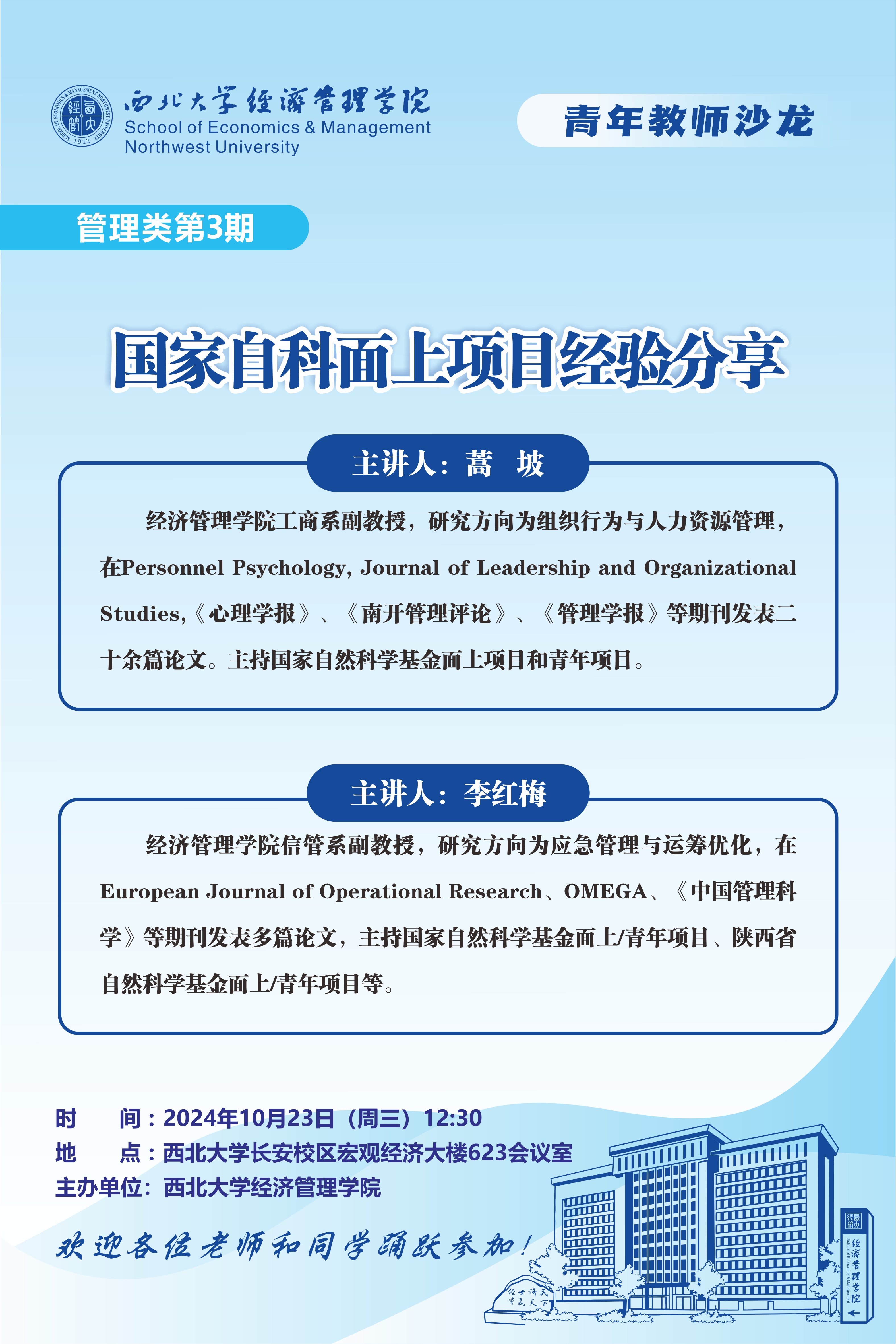 青年教师沙龙---管理类第3期:国家自科面上项目经验分享